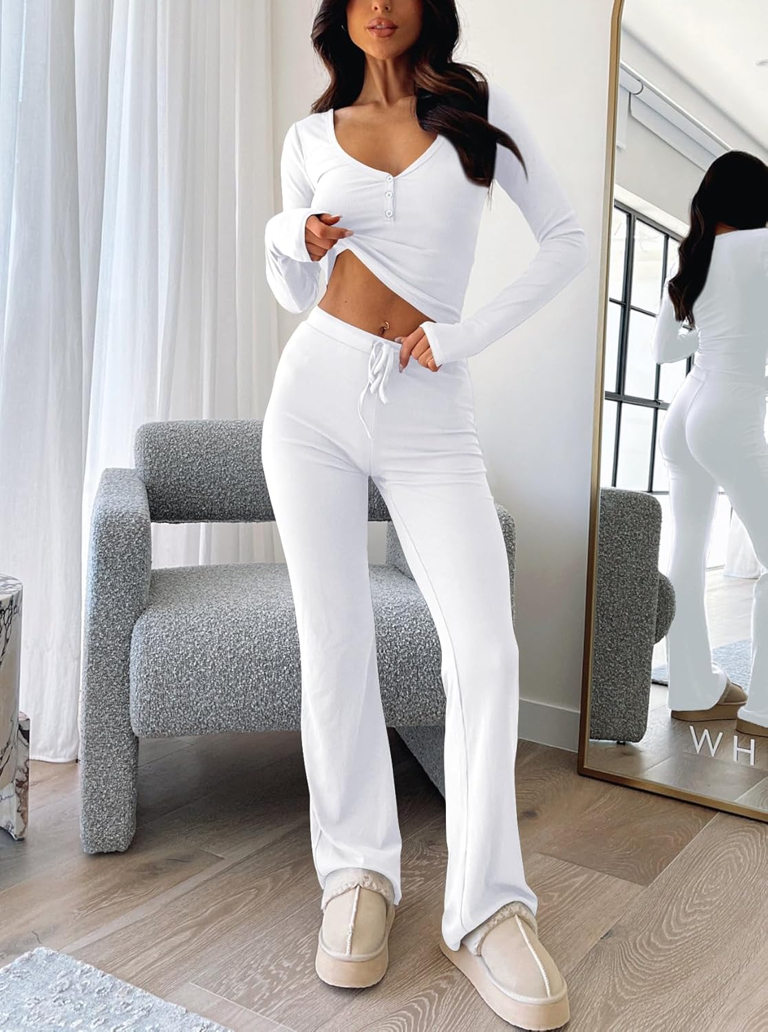 - Top:Long sleeve, v neck, sexy, 2 piece, button front, slim fit, y2k style,fashion,elegant,comfy,casual crop tops, long sleeve shirts,2 piece sets for women, lounge sets for women,two piece set, women set, lounge set,matching set,PJ set,sexy pajama sets, pajama set.