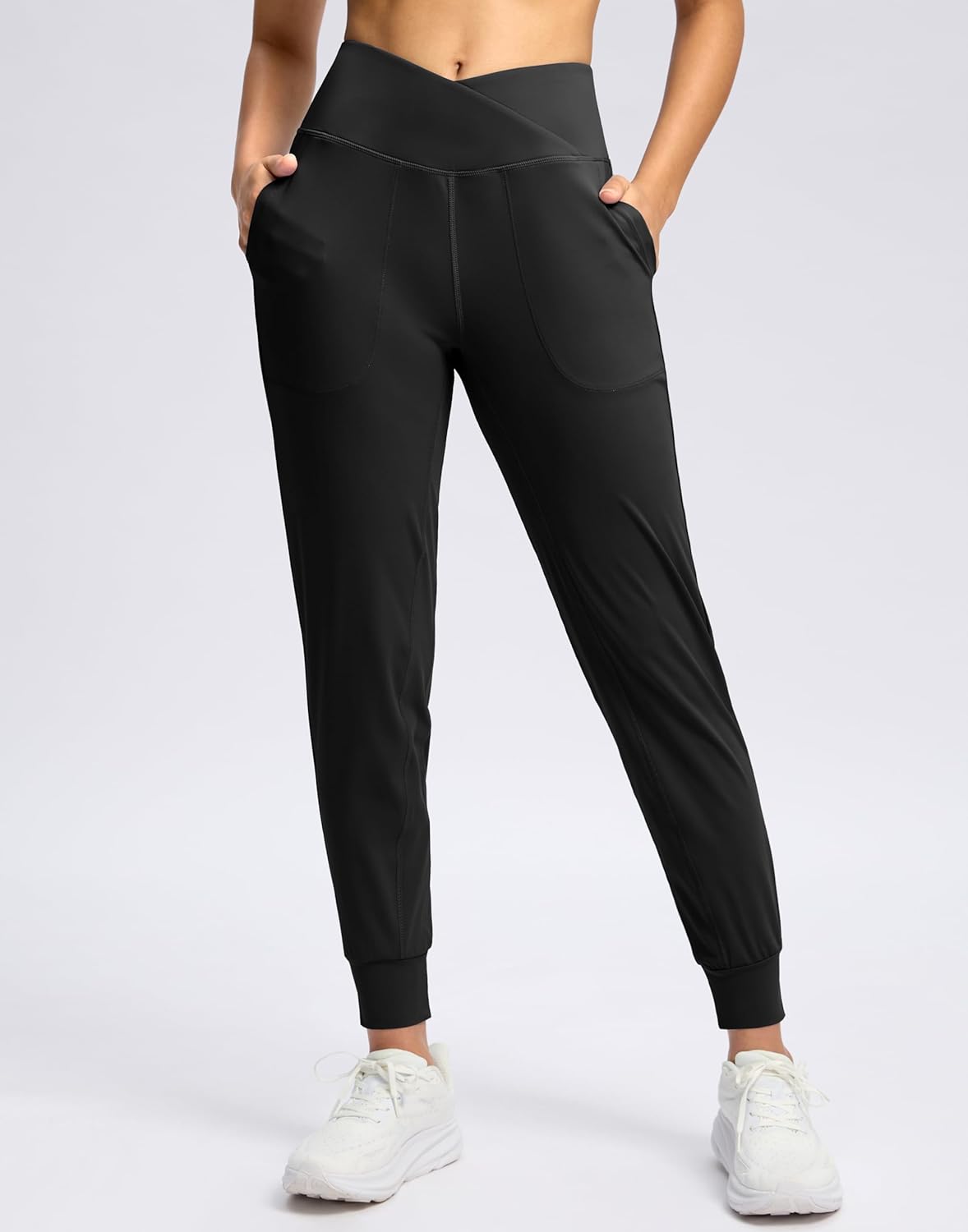 SANTINY Women’s Joggers with Pockets Crossover Waist Yoga Pants Loose Athletic Leggings for Workout, Running, Lounge